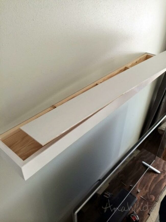 White wall background amplifies the shelf's streamlined composition.