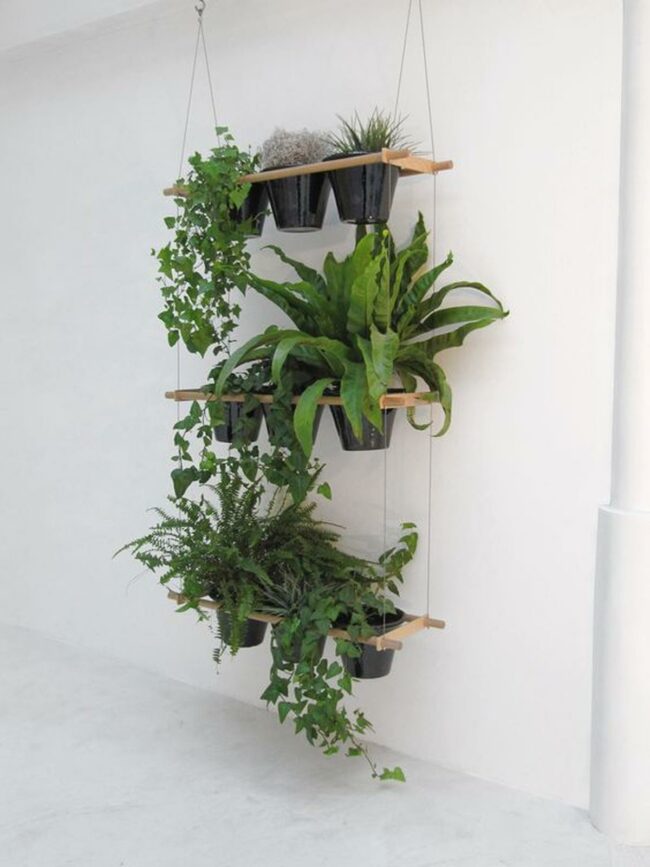 Vertical gardening maximizes space efficiency without cluttering the floor.