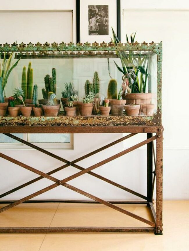 Green plants nestled inside bring fresh energy and visual interest to plain walls.