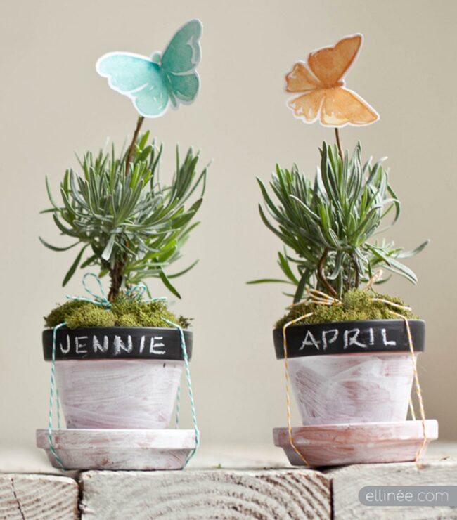 Chalkboard labels personalize each pot with names like "Jennie" and "April," making the gift feel special and thoughtful.