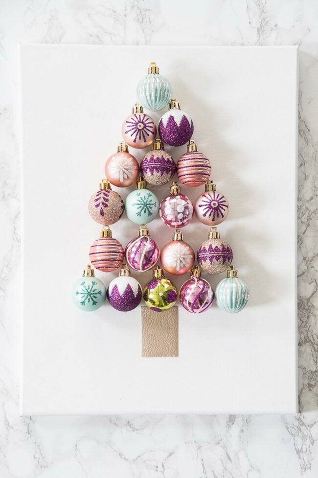 Christmas tree wall art brings magical holiday cheer through an innovative ornament arrangement.