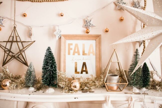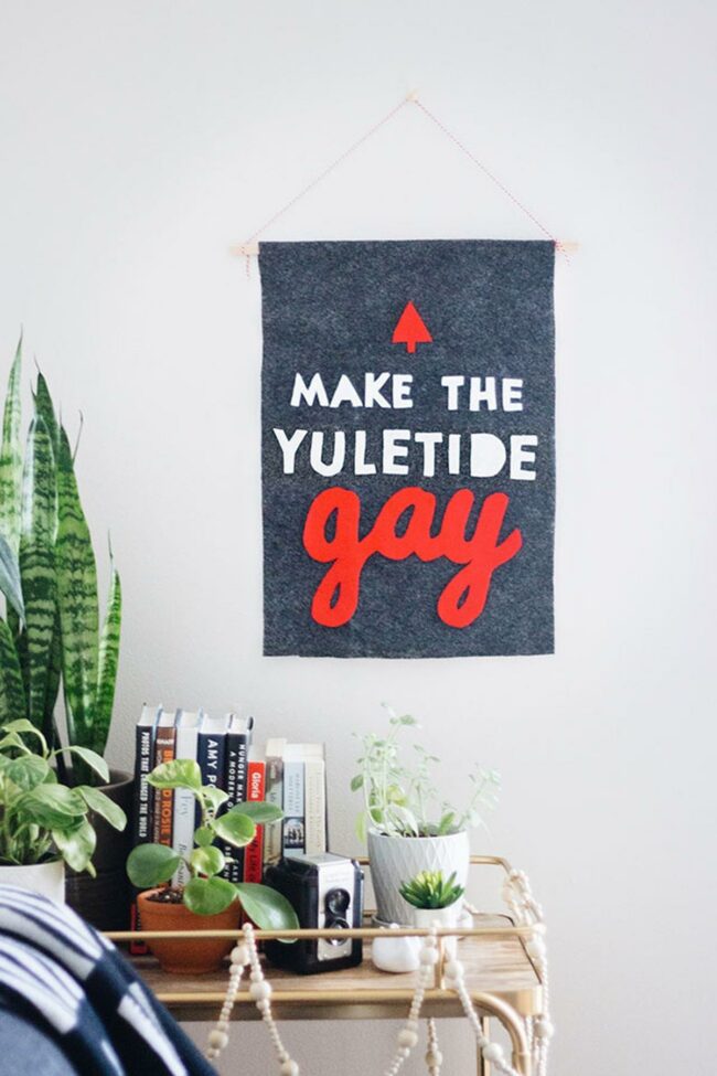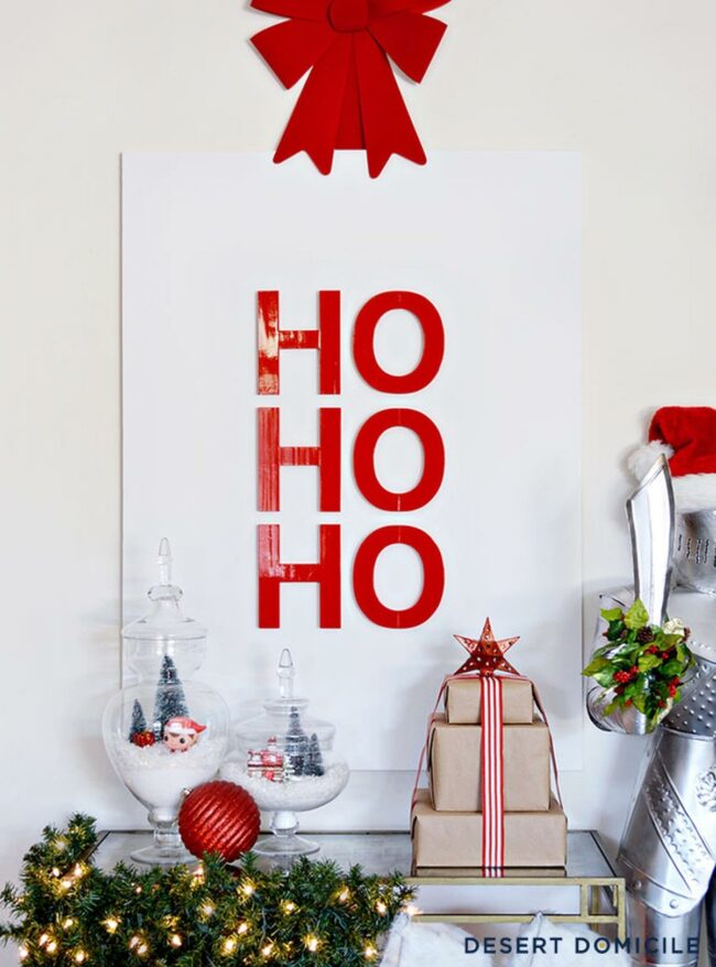 Bold letters on a framed sign add a playful holiday message that brings instant cheer.