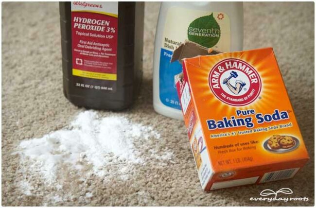 Simple household items combine to tackle carpet disasters without expensive cleaners.