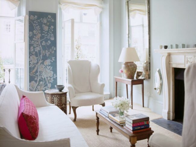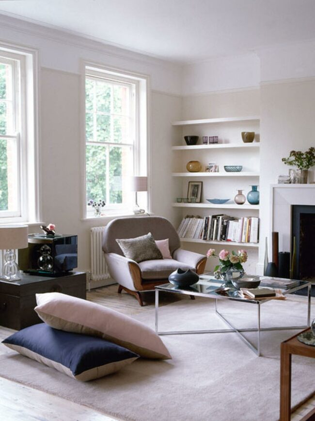 Living rooms become havens of tranquility when designed with light walls and neutral tones throughout the space.