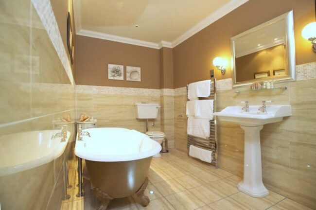 This careful attention to detail makes the bathroom both functional and beautiful without overwhelming the senses.