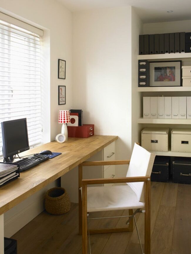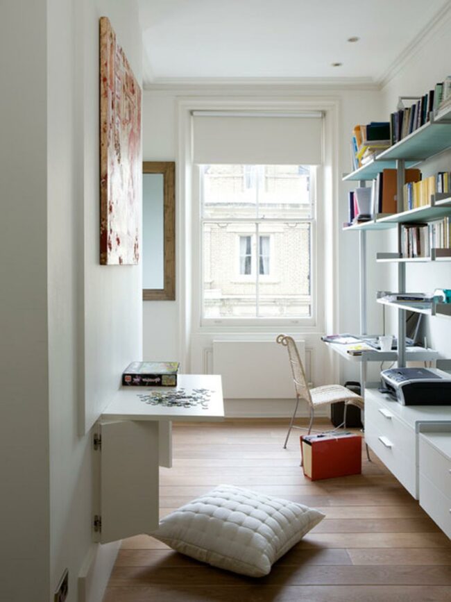 Such clever arrangement shows how even the smallest spots in a home can become functional work areas.