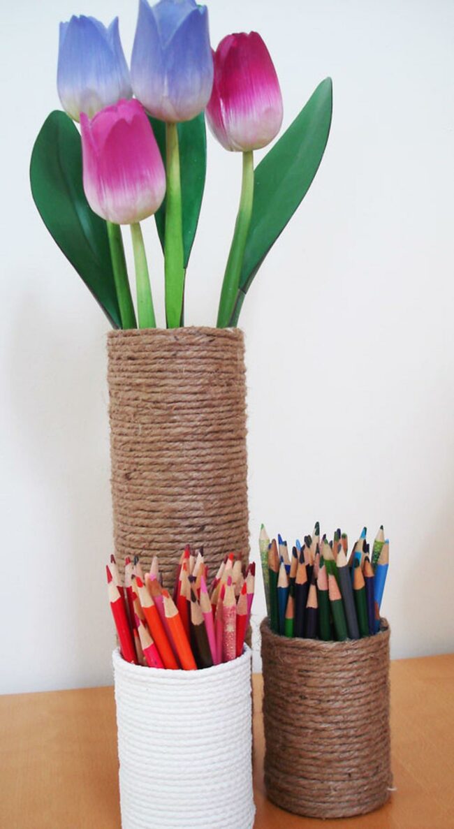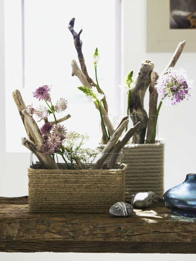 Rustic rope vases are an artful blend of natural textures and creative organization.