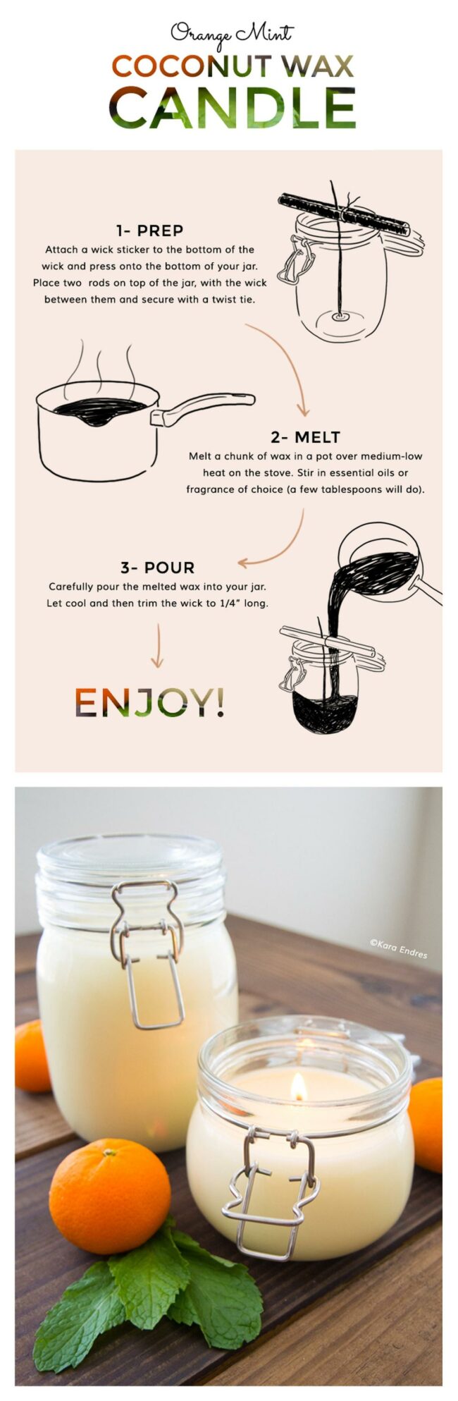 This simple DIY project combines natural ingredients like coconut wax, orange essential oil, and mint for a stunning homemade candle.
