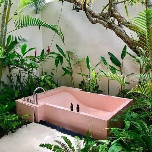 Pink bathtubs in outdoor spaces are unexpected showstoppers that transform ordinary gardens into personal retreats.