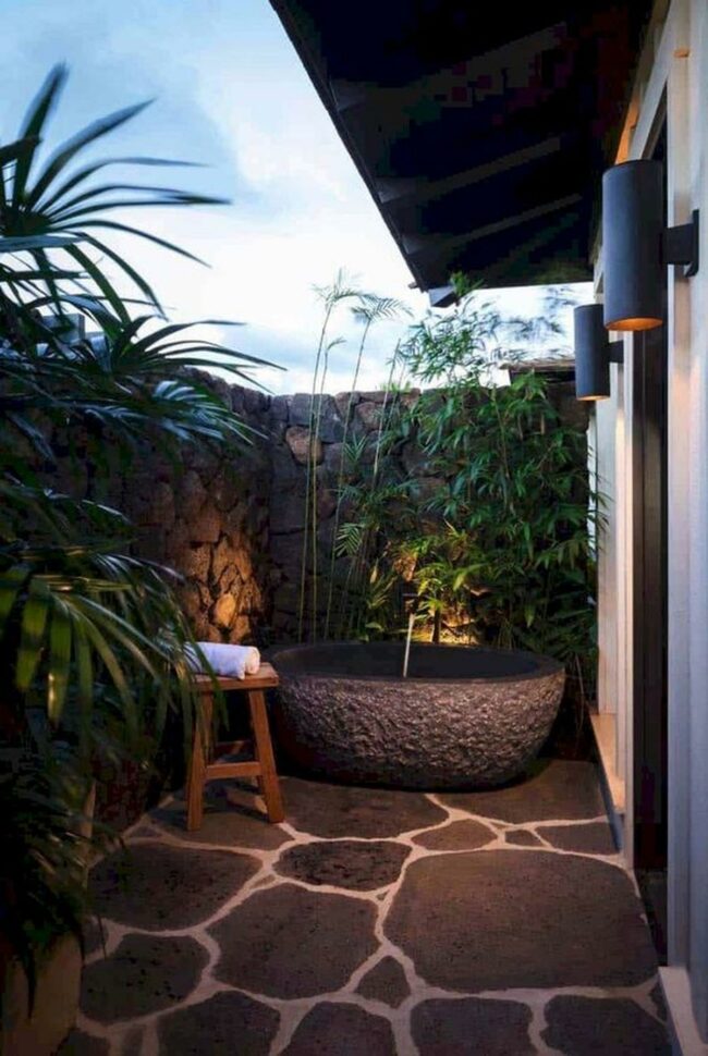 Outdoor stone bathtubs are the ultimate relaxation sanctuary for nature lovers.