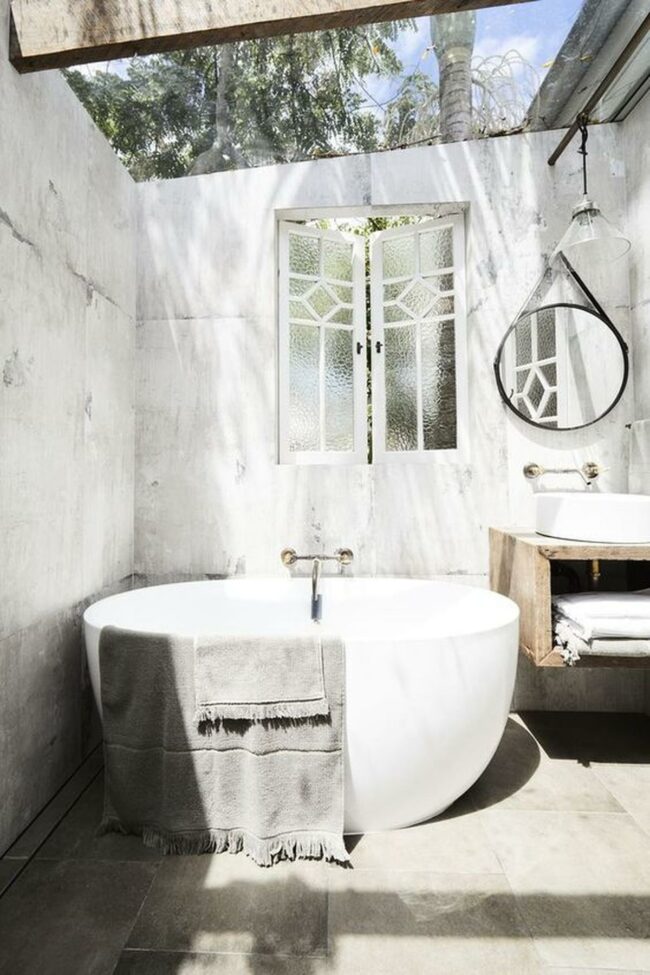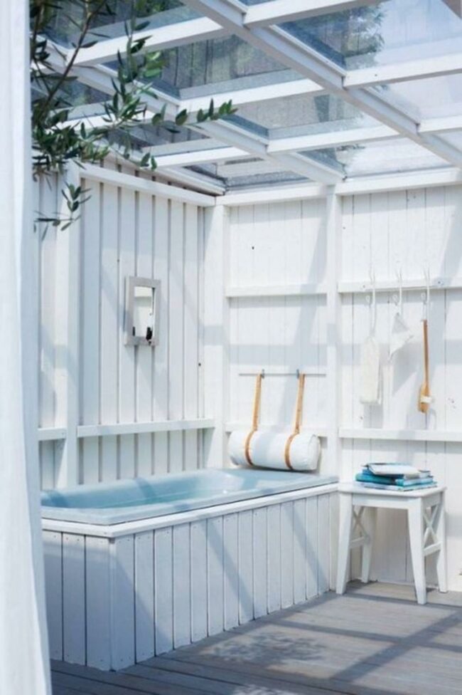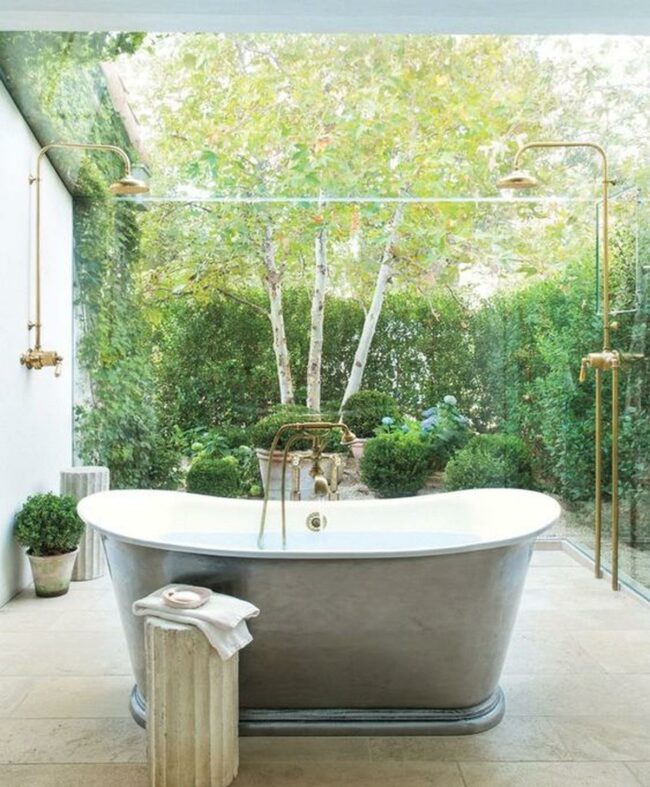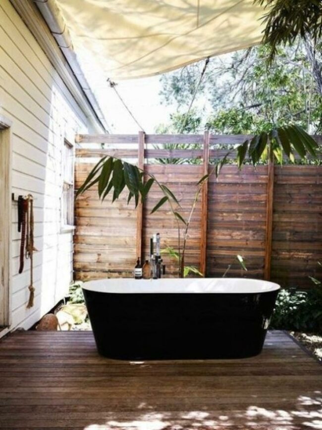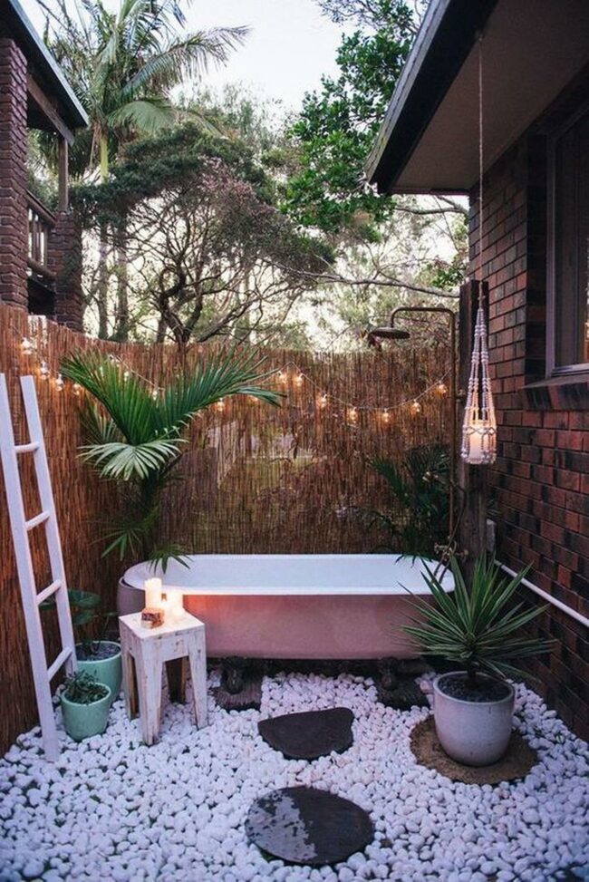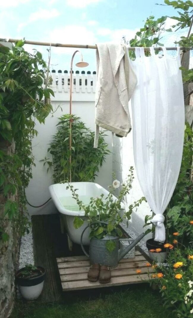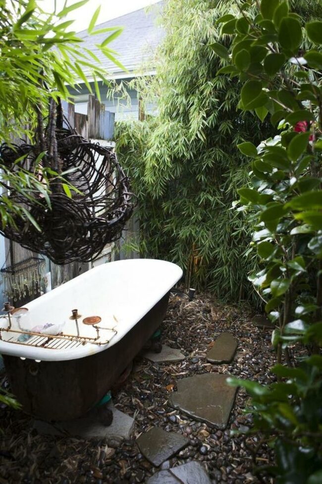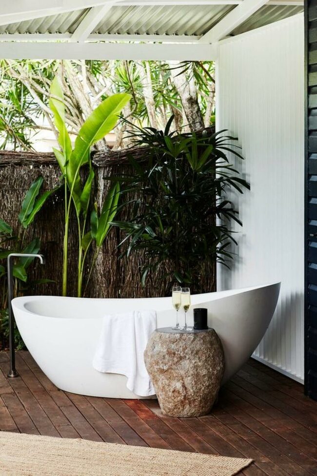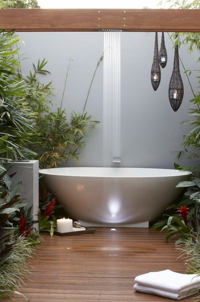 Outdoor bathing sanctuary is a tranquil escape where relaxation meets natural beauty.