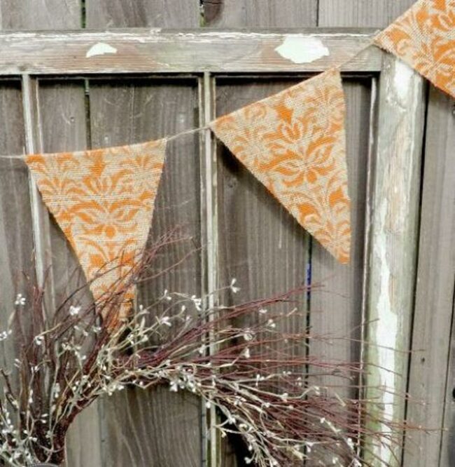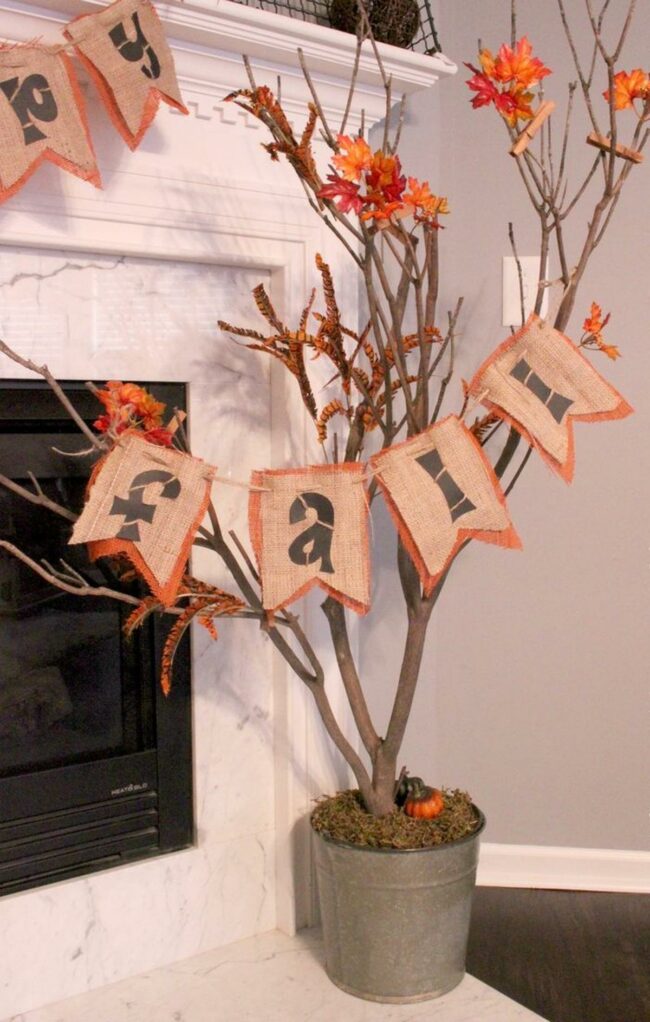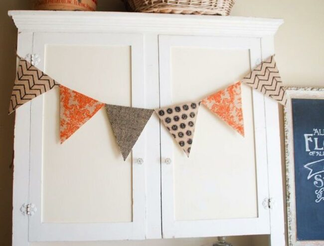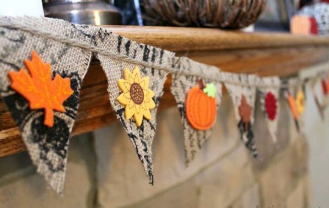 The pointed banner pieces hang perfectly from a rustic string, creating an eye-catching display that celebrates autumn's beauty.