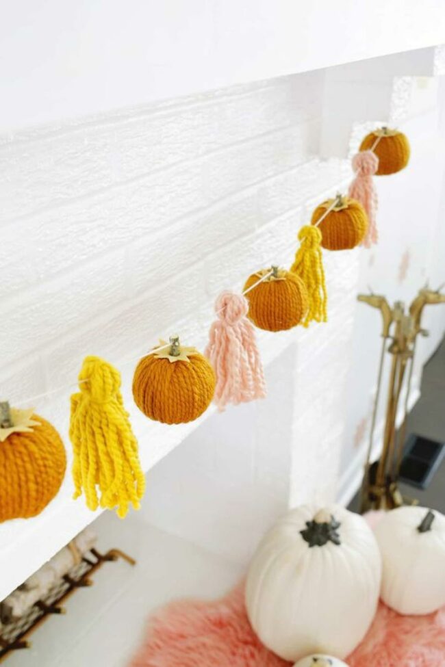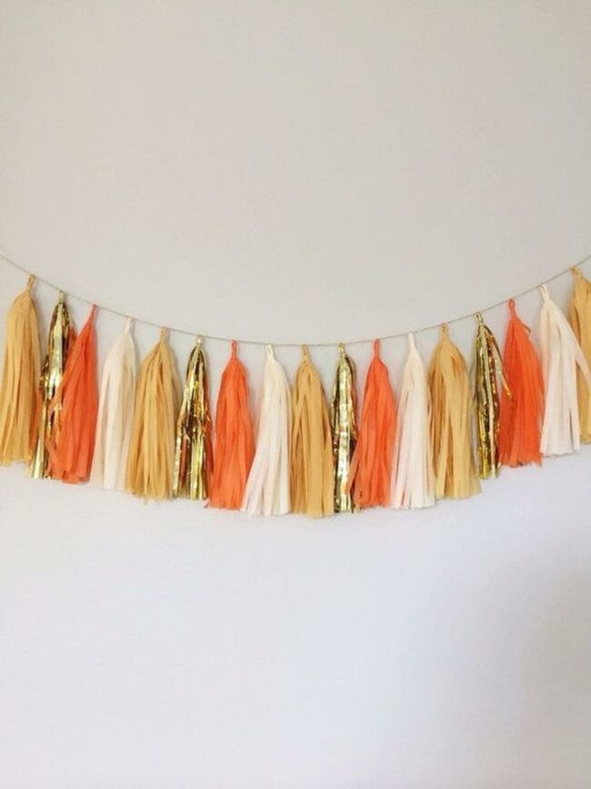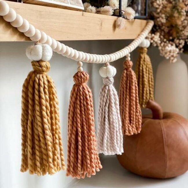 White tassels dangle from the ends of the garland, adding texture and a homemade quality that makes it feel special.