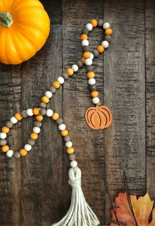 Fall magic comes alive with this delightful orange and white beaded garland featuring an adorable pumpkin charm that catches everyone's eye.