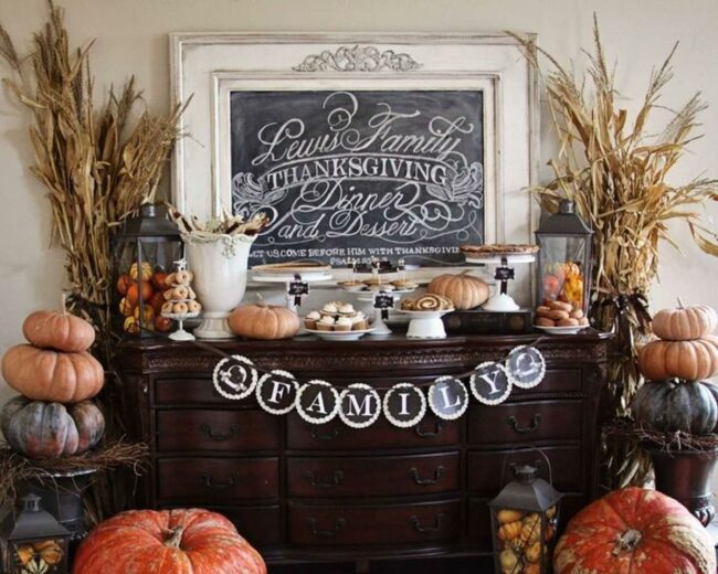 The heartfelt "Give Thanks" chalkboard message sits prominently above, reminding everyone of autumn's grateful spirit.