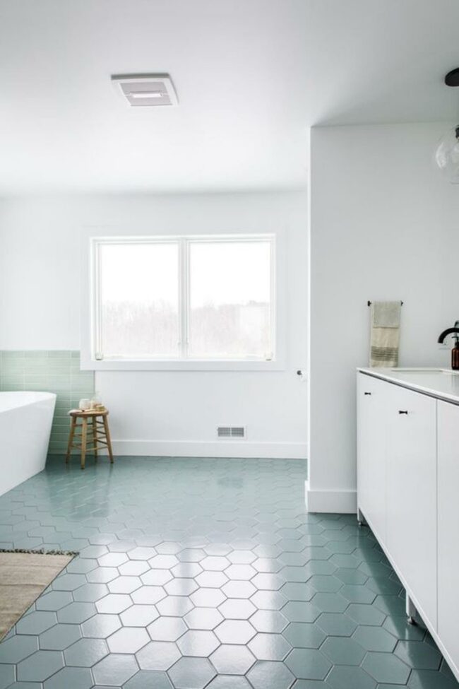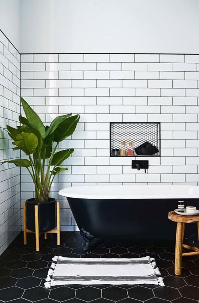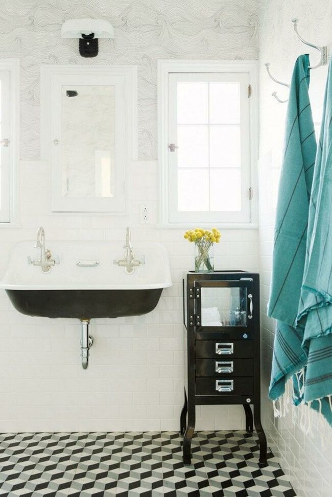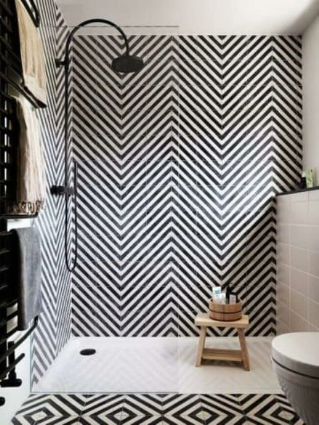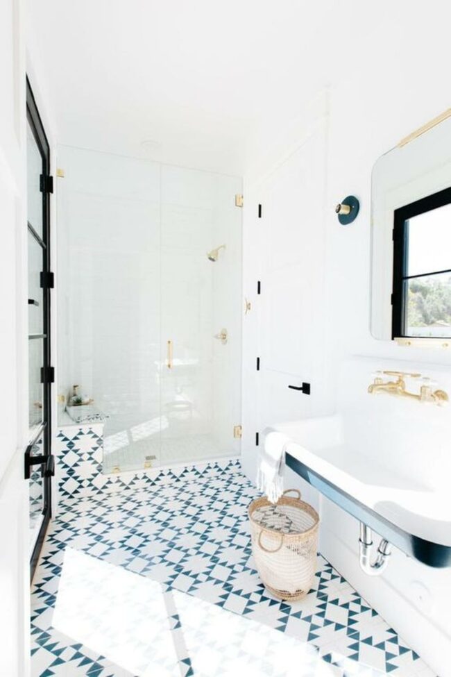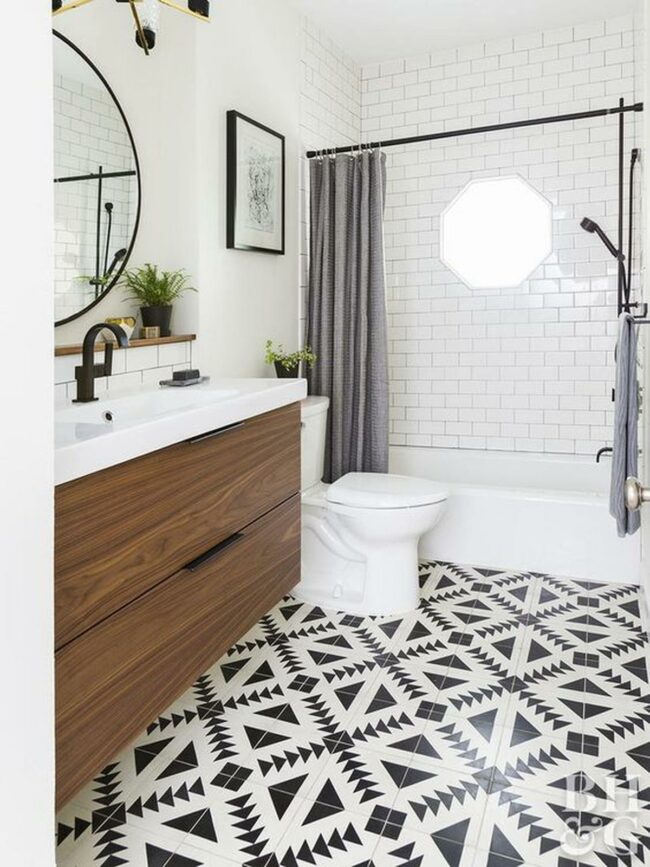 This bathroom proves that mixing basic colors with interesting patterns creates a timeless design that never goes out of style.