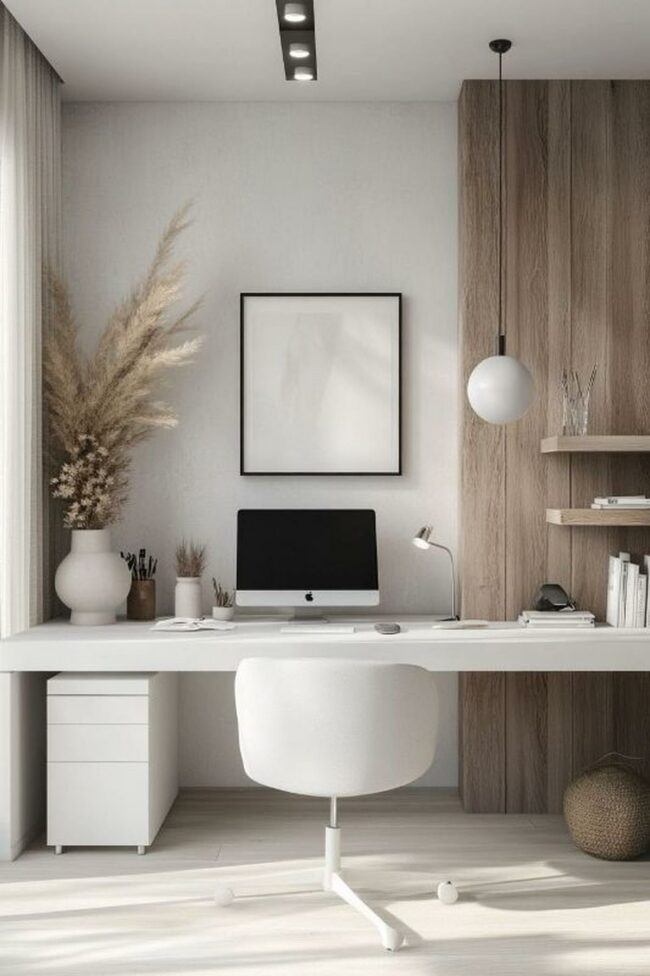 Minimalist home offices are peaceful sanctuaries designed for focus and comfort.