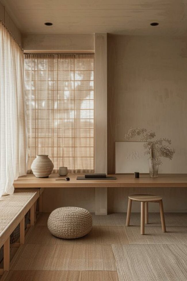 Soft natural elements transform this corner into a peaceful retreat for concentration and inspiration.