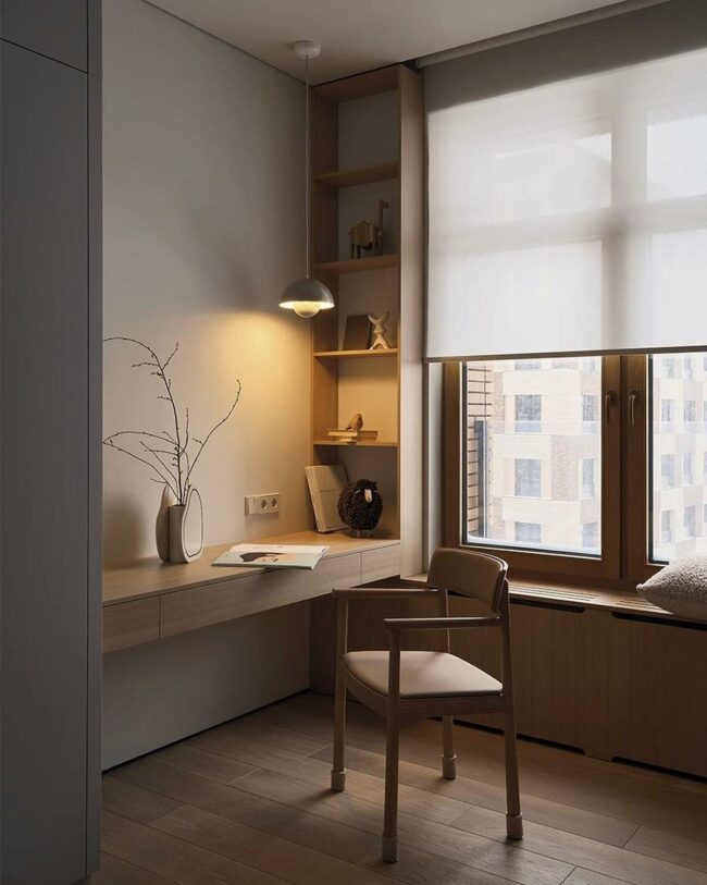 This workspace invites peaceful concentration and understated elegance.