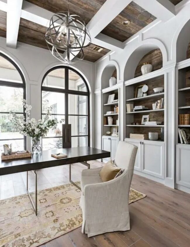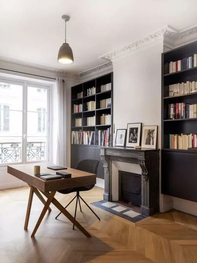 Such careful attention to both comfort and purpose makes this room a delightful retreat for reading enthusiasts and hard workers.