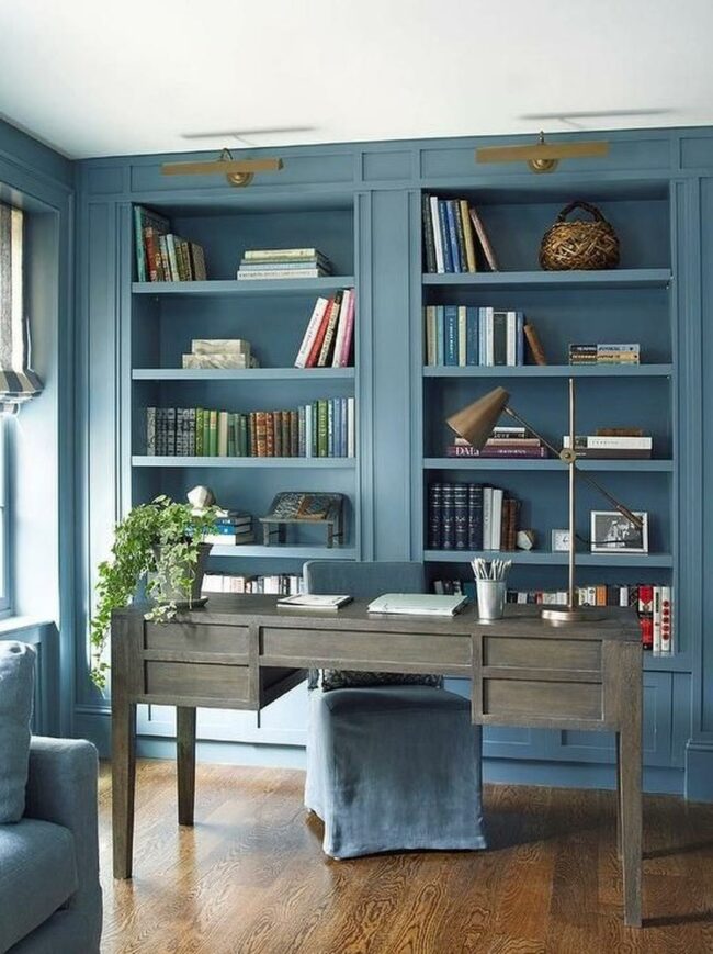 Muted Blue Office Shelving