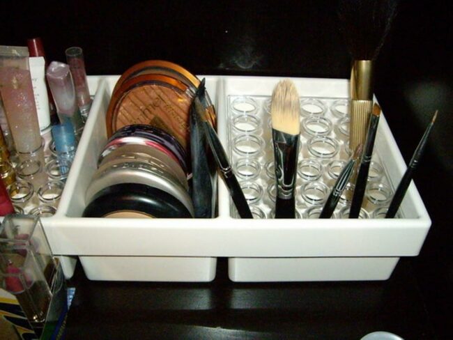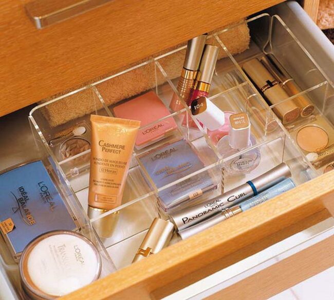 Grooved top sections hold makeup brushes and small tubes with precision.