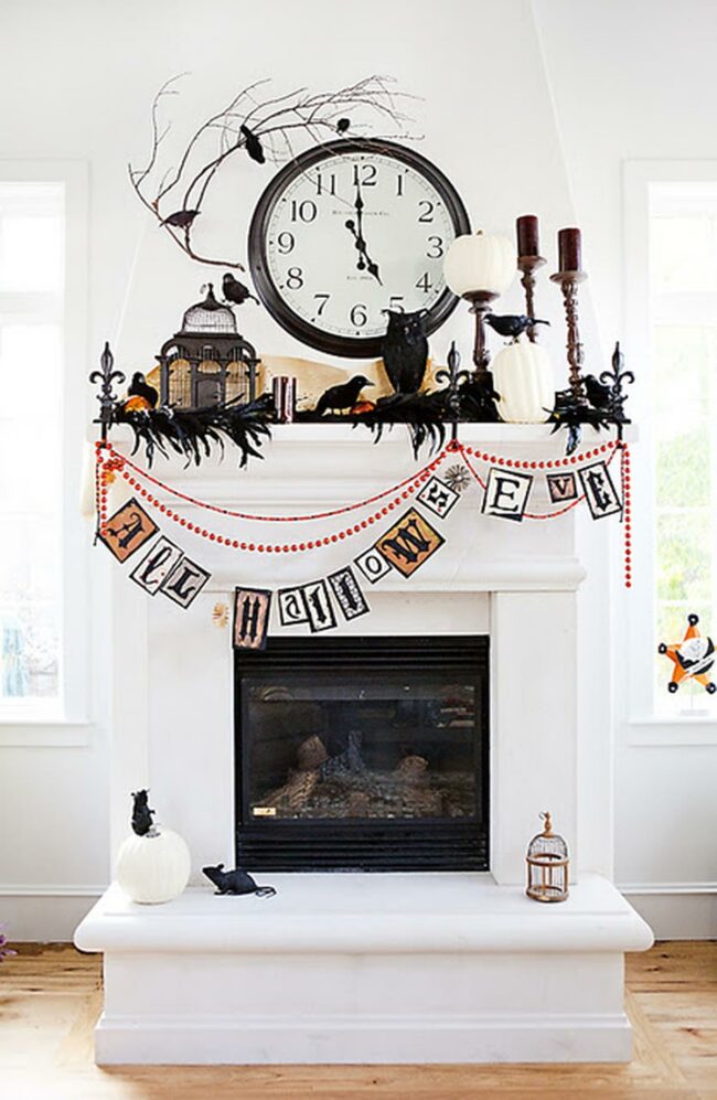 Such thoughtful decorating transforms an ordinary fireplace into the perfect Halloween focal point for your home.
