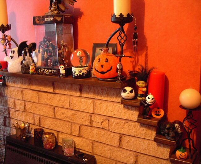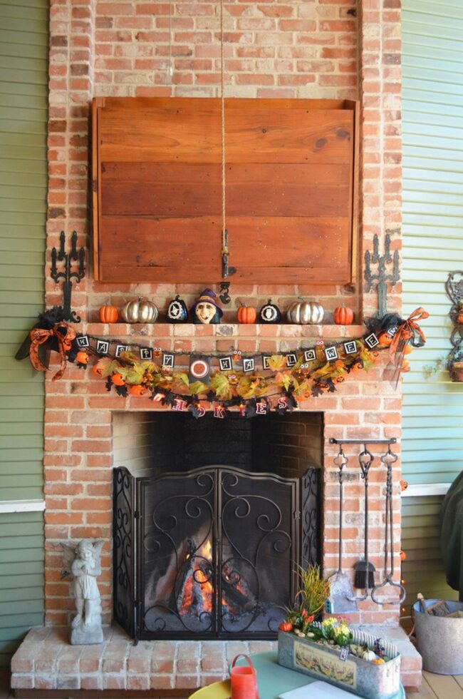 Brick Fireplace Halloween Mantel