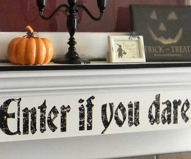 The bold "Enter if you dare" sign creates an instant feeling of adventure for anyone who stops by during the fall season.