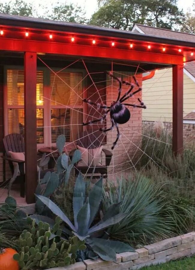 Halloween decor transforms this house into a spine-chilling spider sanctuary.