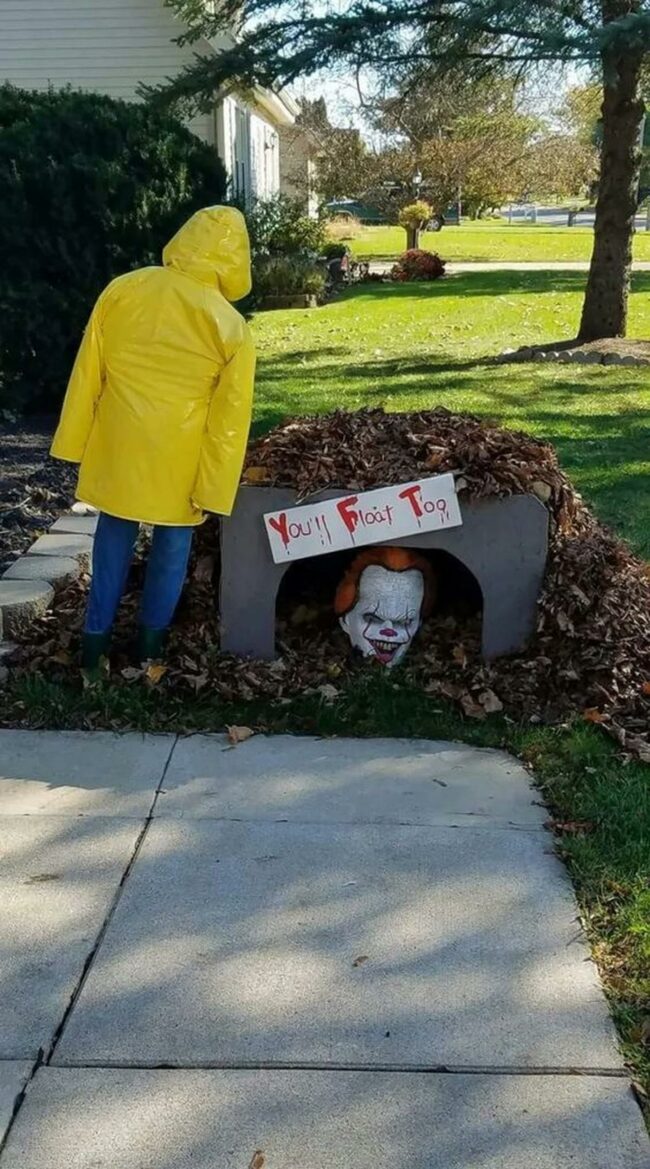Passersby cannot help but smile at this creative and amusing Halloween setup.