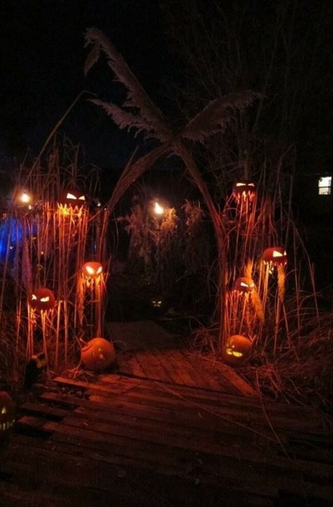 Halloween enthusiasts will love this simple and striking way to decorate an outdoor space.