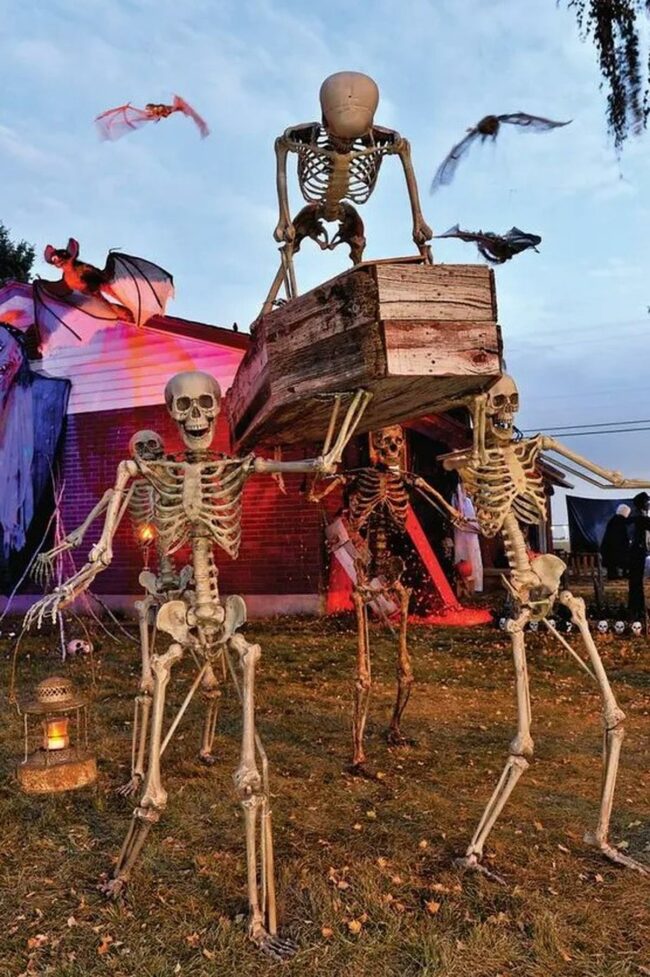 Halloween skeleton displays are a spine-chilling artistic statement that transforms outdoor spaces into haunting scenes.