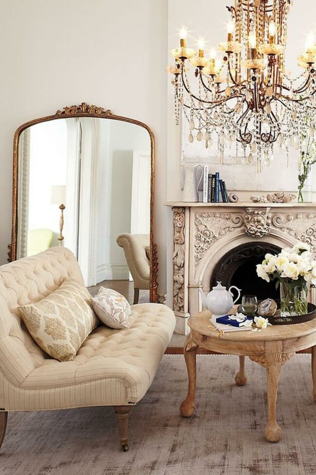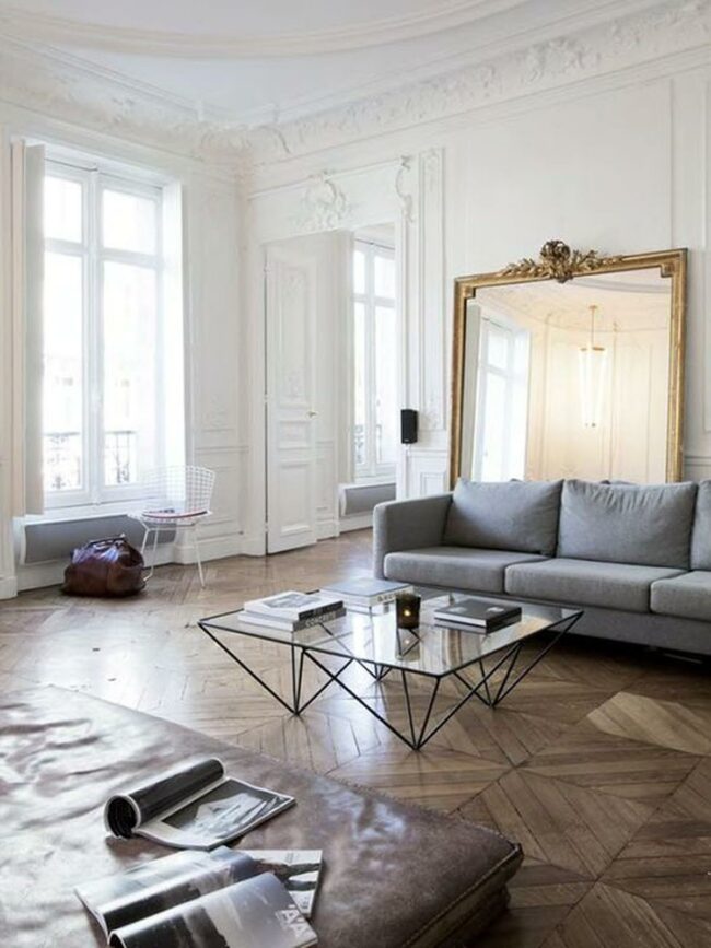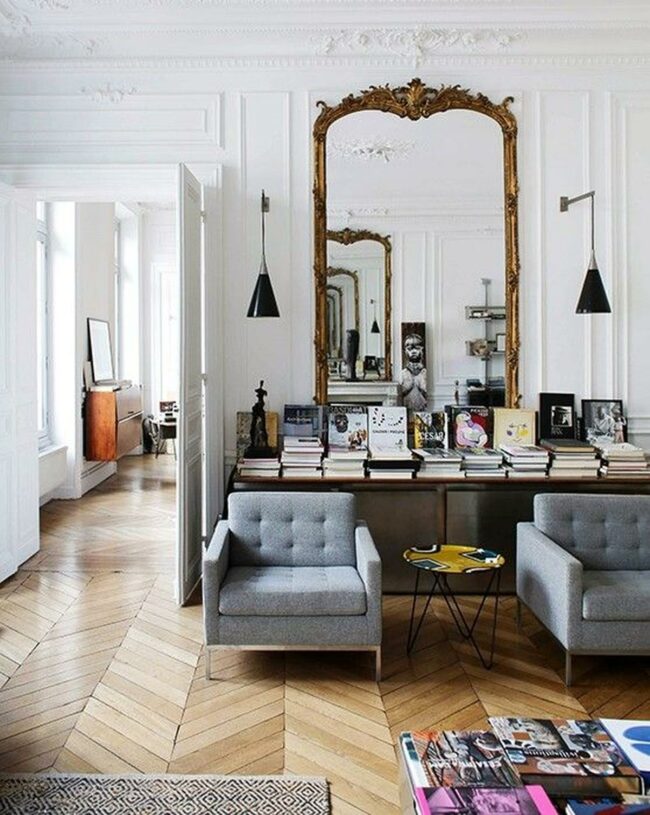 Large vintage mirrors with gold frames trick the eye, making spaces feel dramatically larger and more expansive.