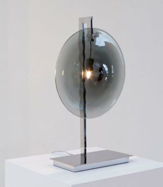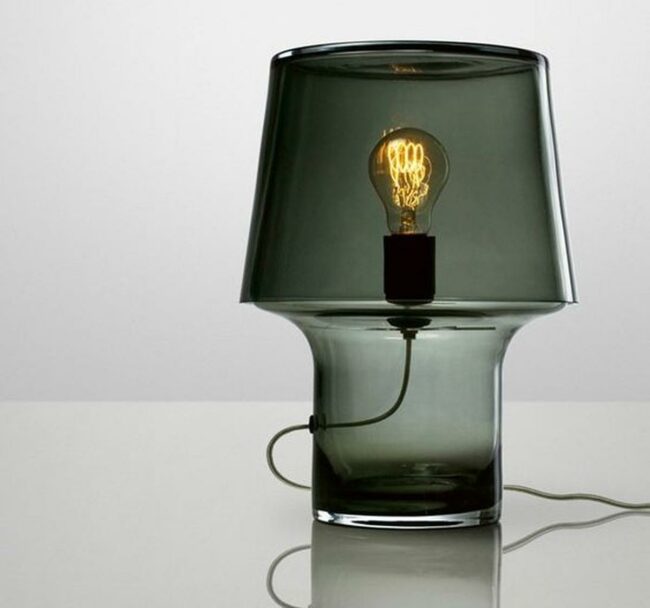 Smoky glass table lamp is a minimalist design marvel that captures attention with its unique silhouette.