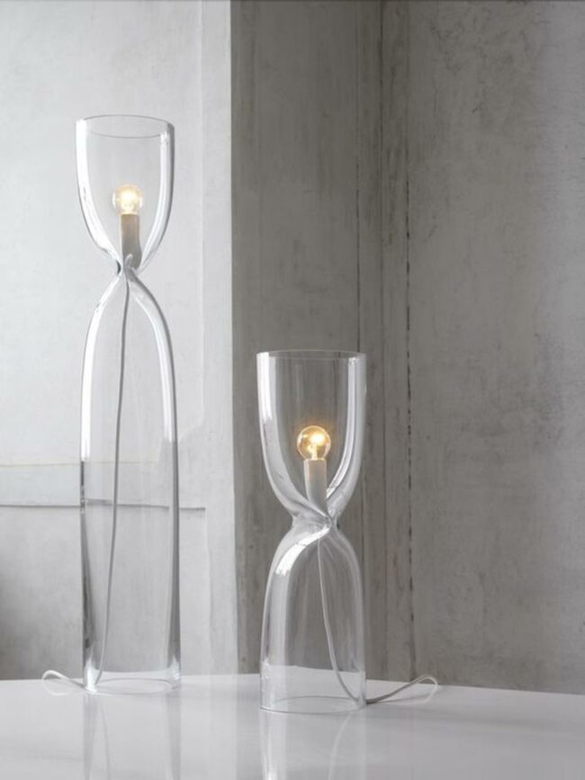 Glass lamps are stunning minimalist design statements that transform any space with their sleek hourglass silhouettes.