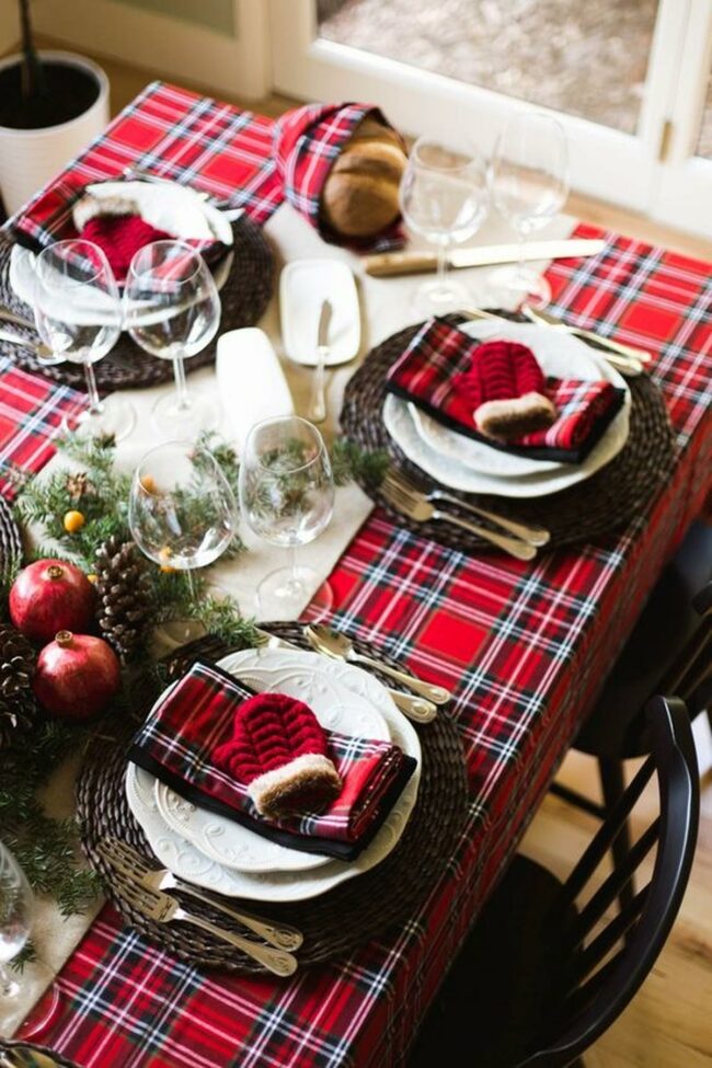 Red plaid dining tables are magical winter sanctuaries that welcome you home with instant comfort.