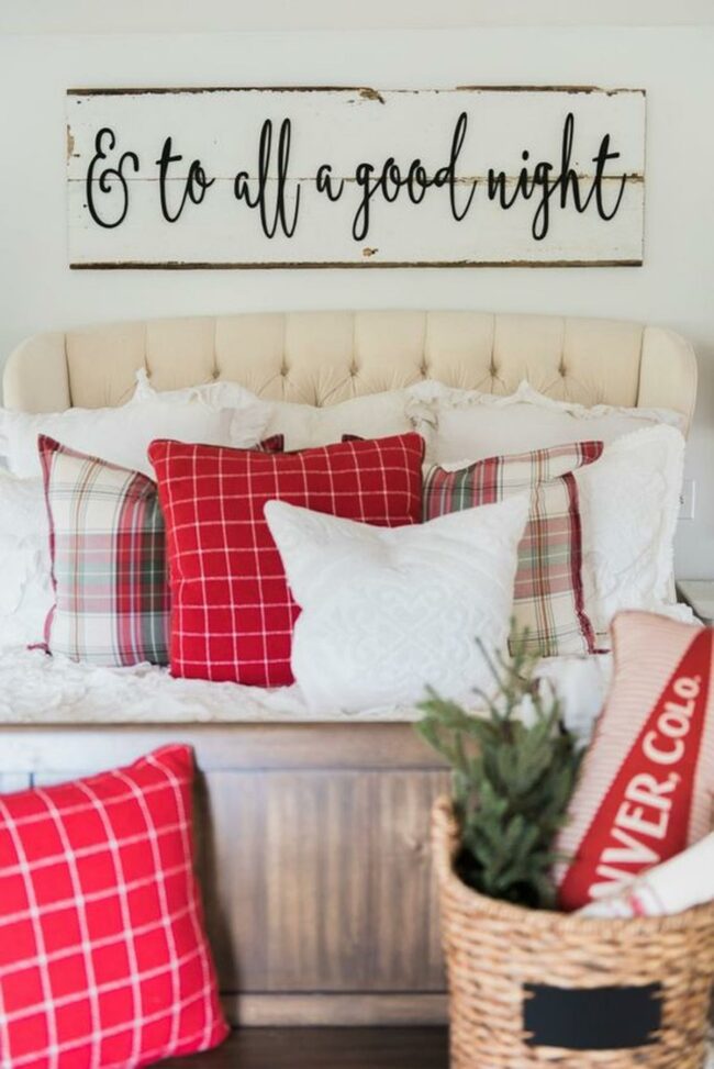 Red plaid patterns are the heart of this cheerful winter sanctuary, transforming a simple space into a festive retreat.