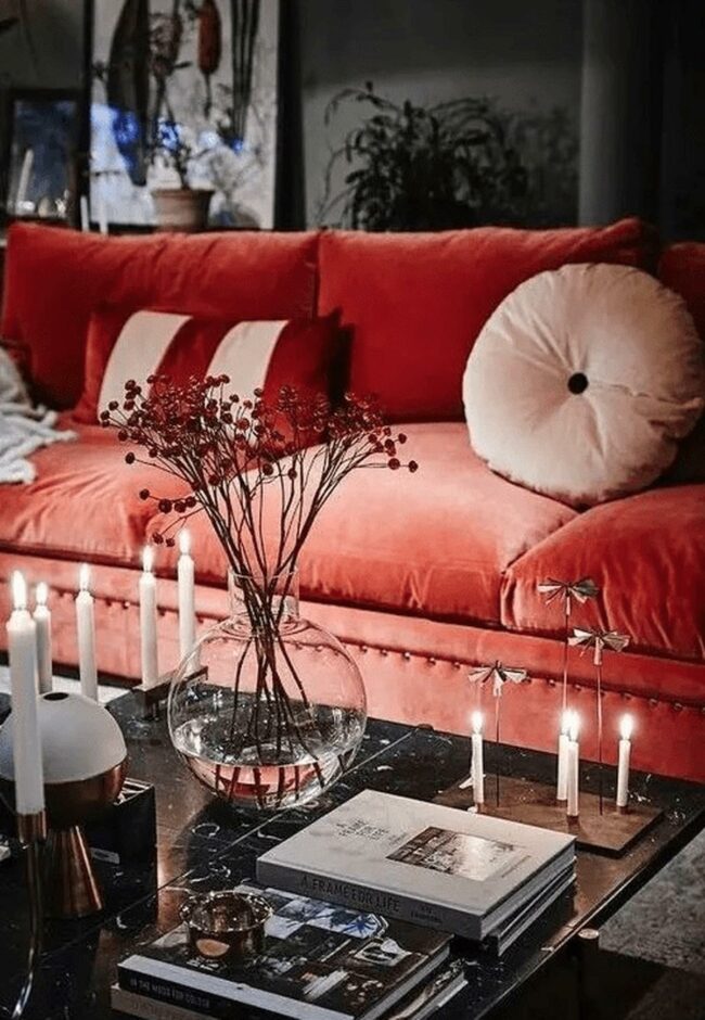 Red Couch Dramatic Centerpiece