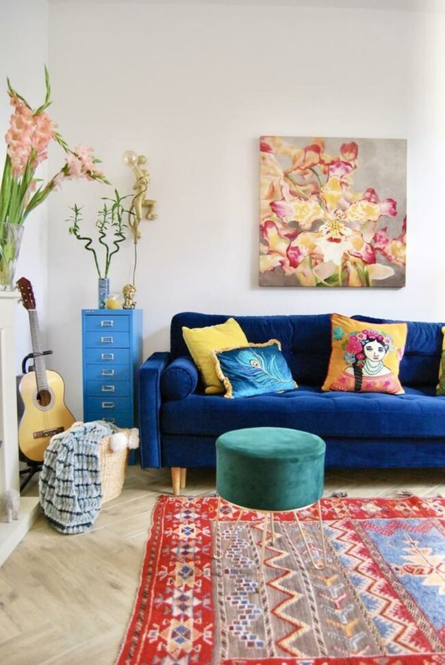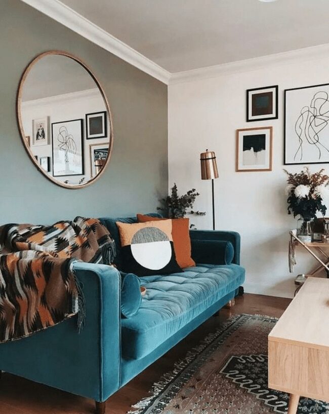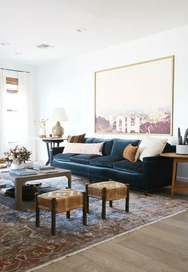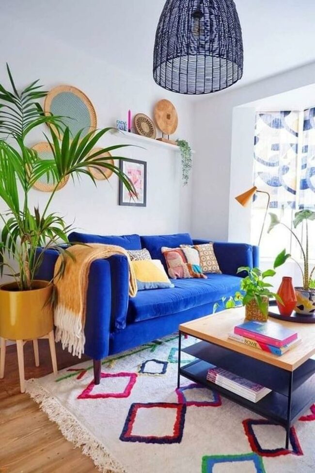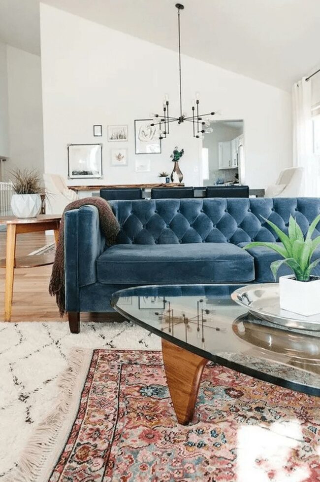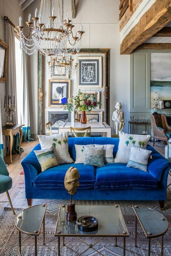Living rooms with blue couches are magnetic conversation starters that instantly energize spaces.