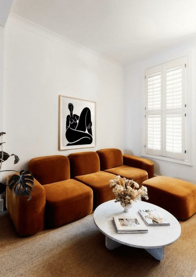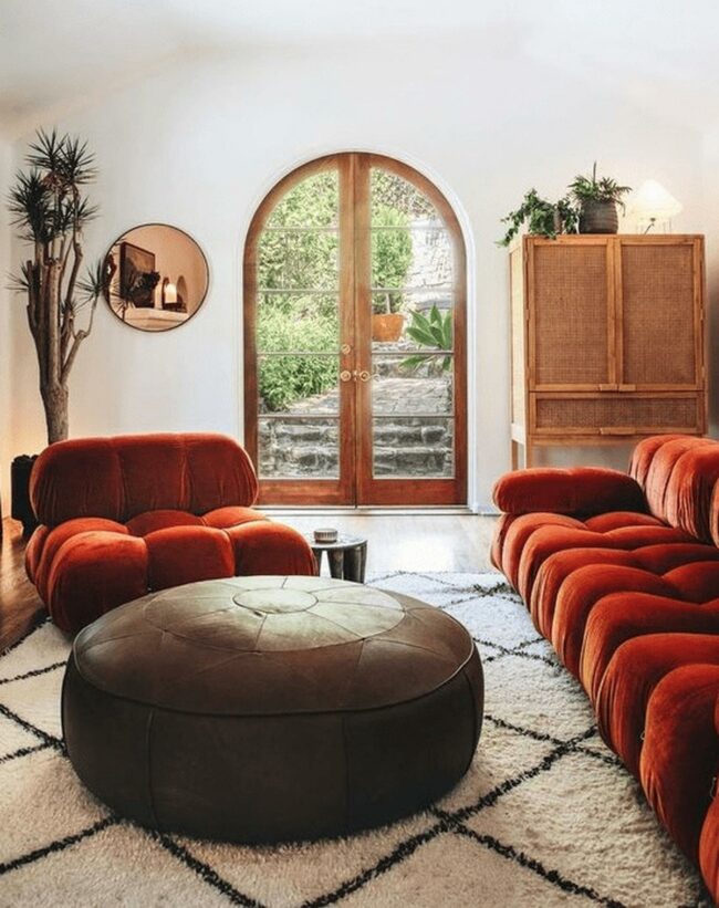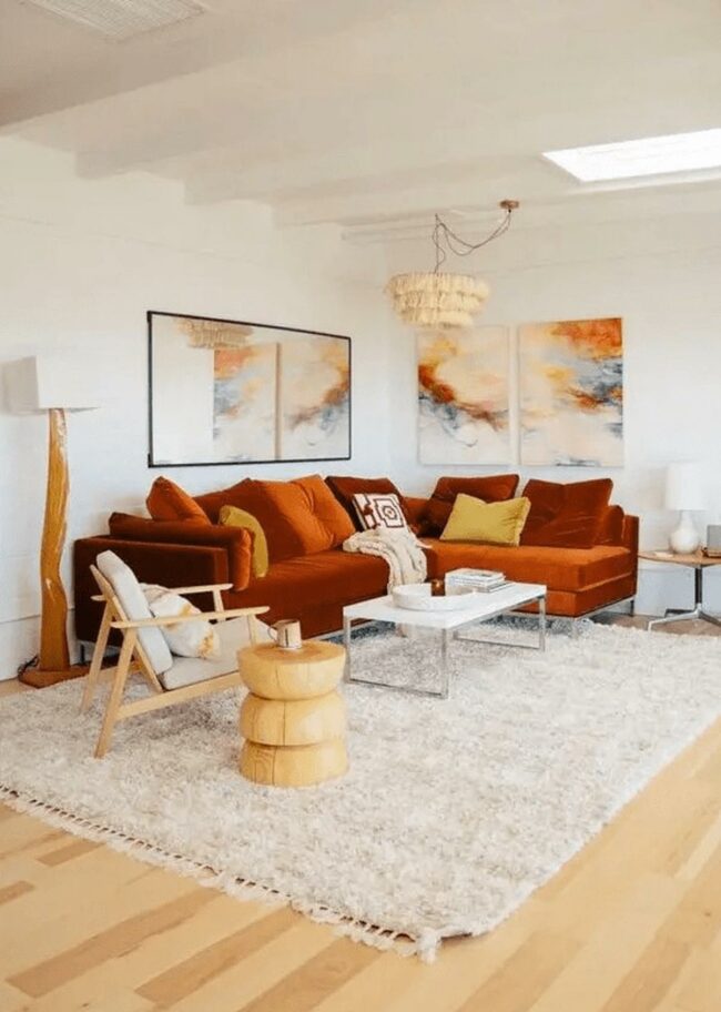 Orange couches immediately grab attention with their bold, welcoming color and energetic presence.
