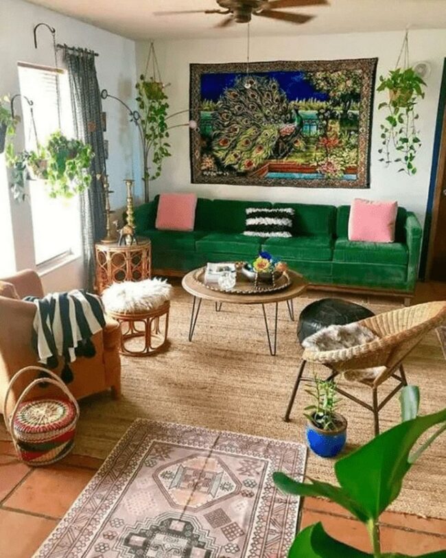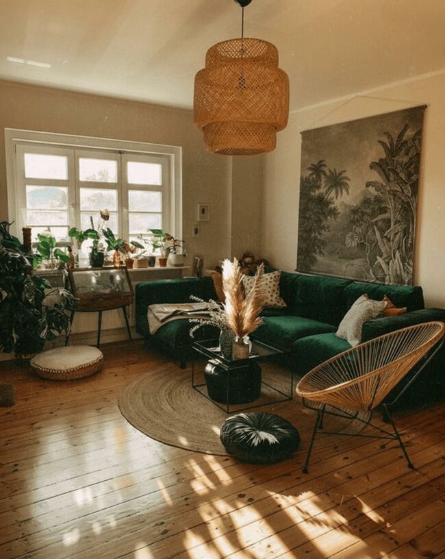 Living rooms with green botanical elements are nature's indoor sanctuaries.