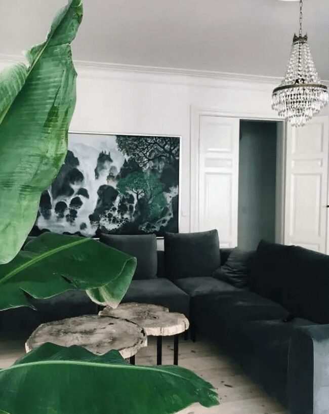Large leafy plants breathe fresh life into calm spaces, softening modern design elements.