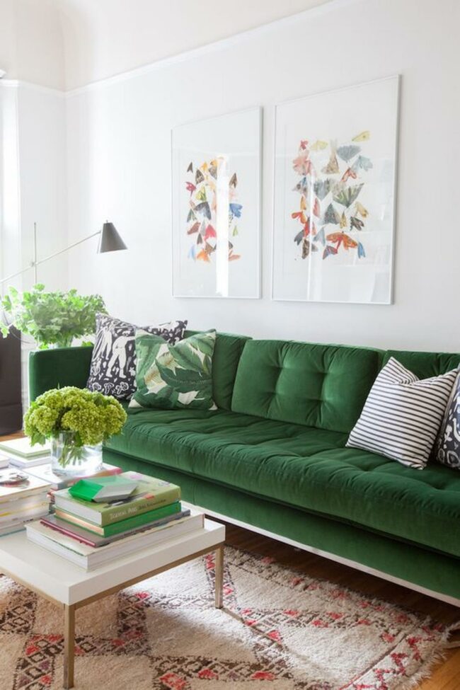Green couches are statement pieces that transform living spaces with bold color and personality.