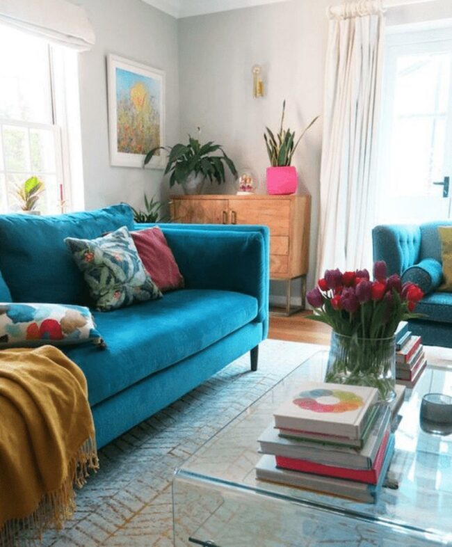 Teal Couch Vibrant Living Oasis
