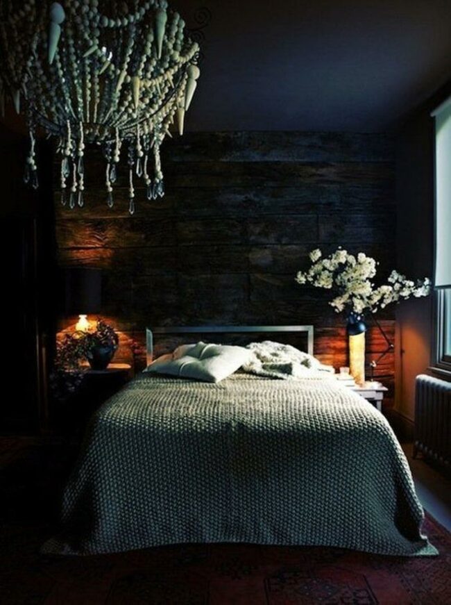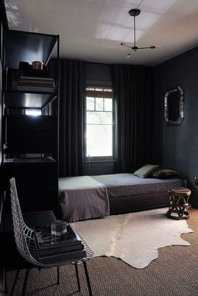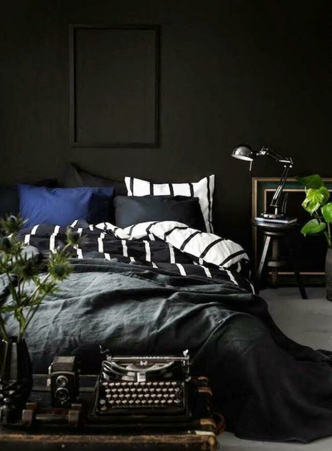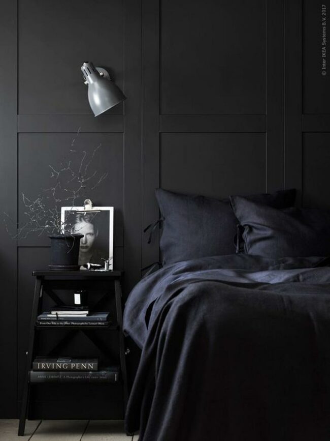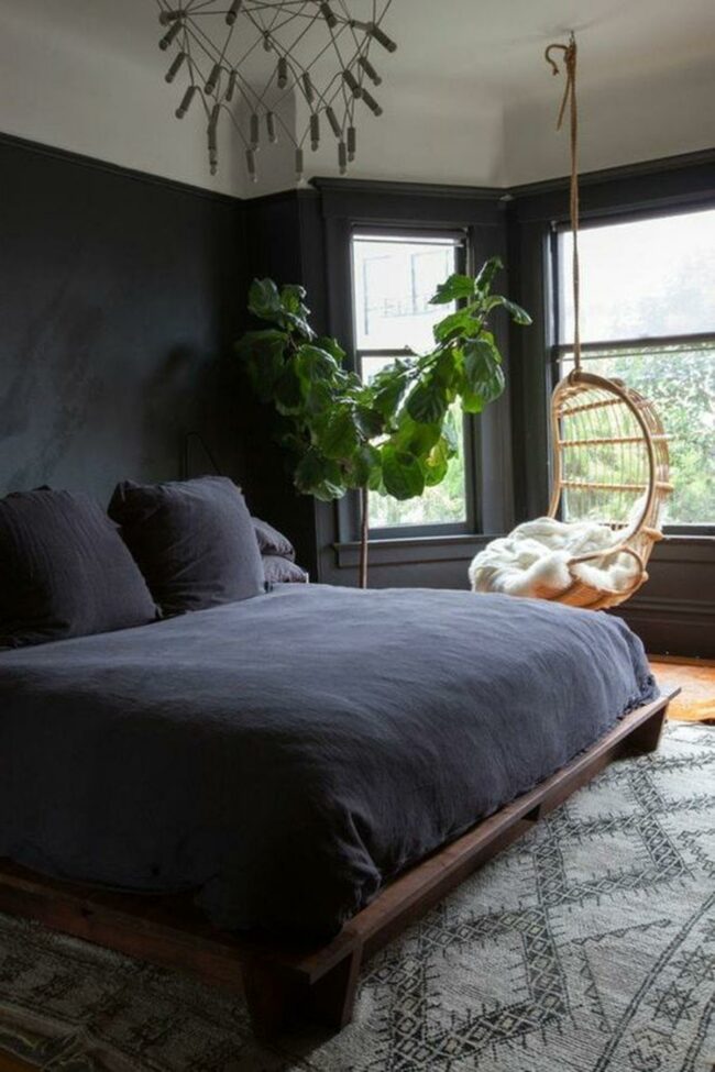 Dark bedroom walls are a serene sanctuary of sophistication that instantly calms the senses.
