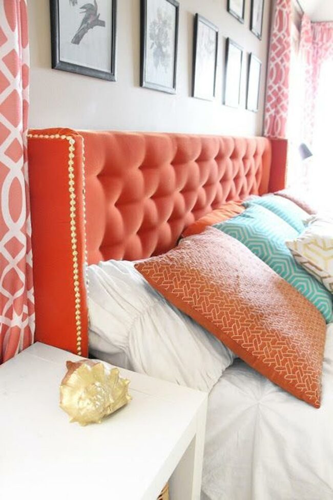 Orange headboards command visual attention with charming button accents that draw your eye immediately.