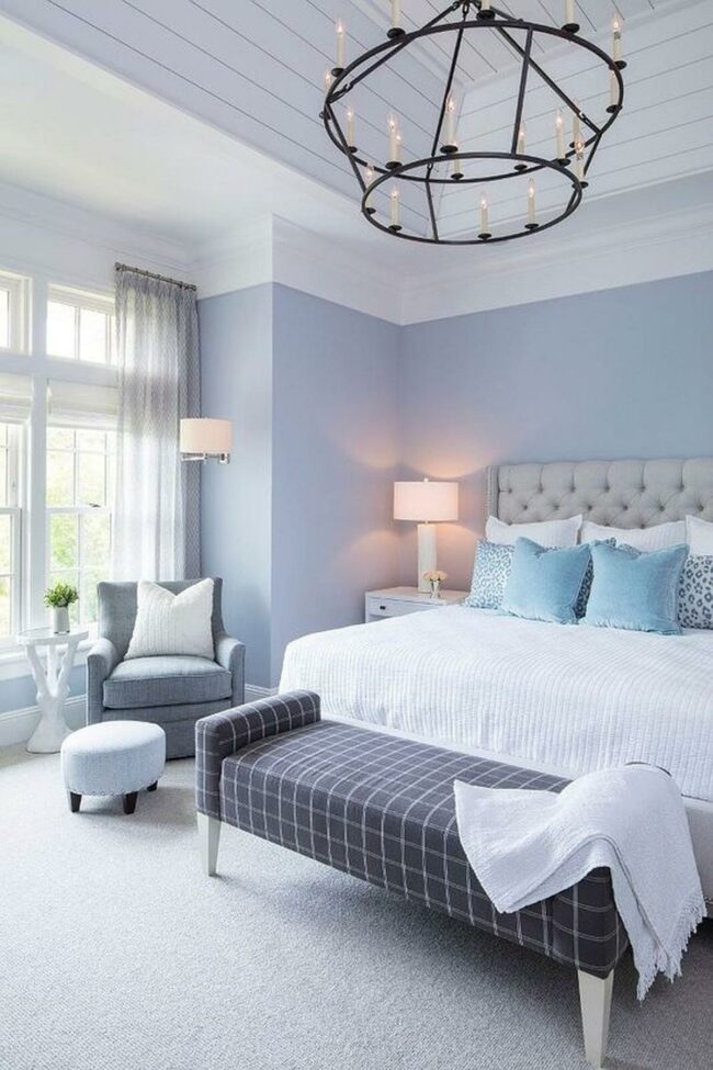 Bedrooms with calm blue walls are peaceful sanctuaries that welcome relaxation.