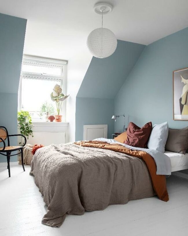 Blue walls create a serene bedroom sanctuary that instantly soothes you.