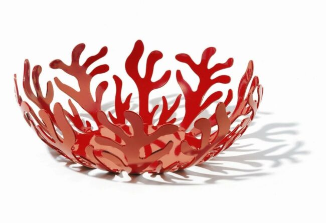 Red coral branches intertwine to form this eye-catching bowl with a glossy finish that reflects light beautifully.